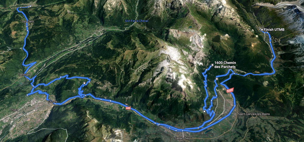 Les Houches > Sallanches (sortie 20) > Magland > Cluses > Châtillon > Taninges >Morzine.